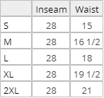 | Size | S, M, L, XL, 2XL |