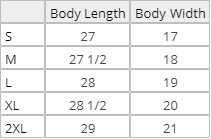 | Size | S, M, L, XL, 2XL |