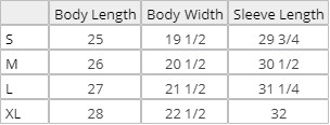 | Size | S, M, L, XL |