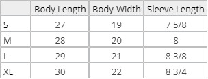 XS, S, M, L, XL, 2XL